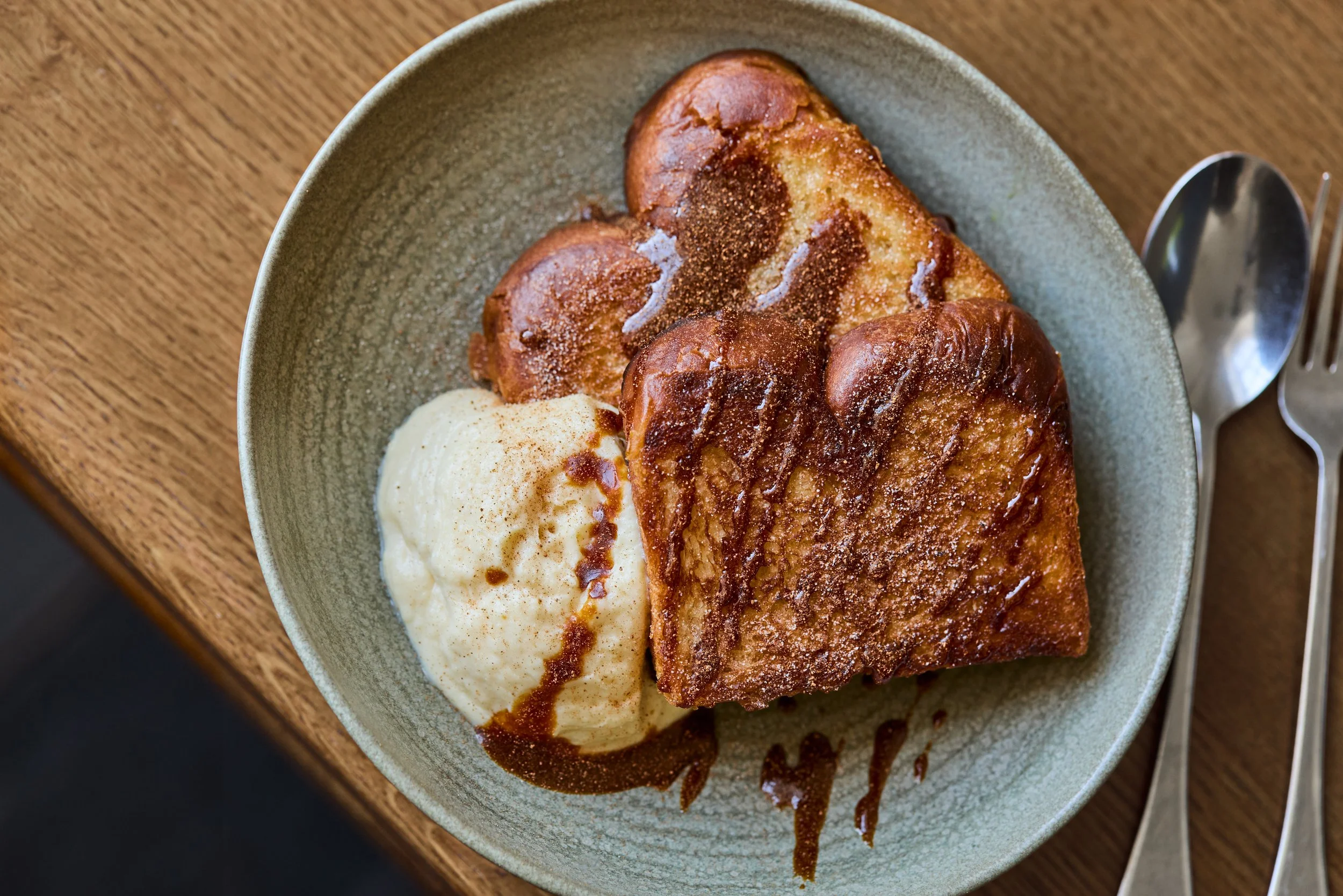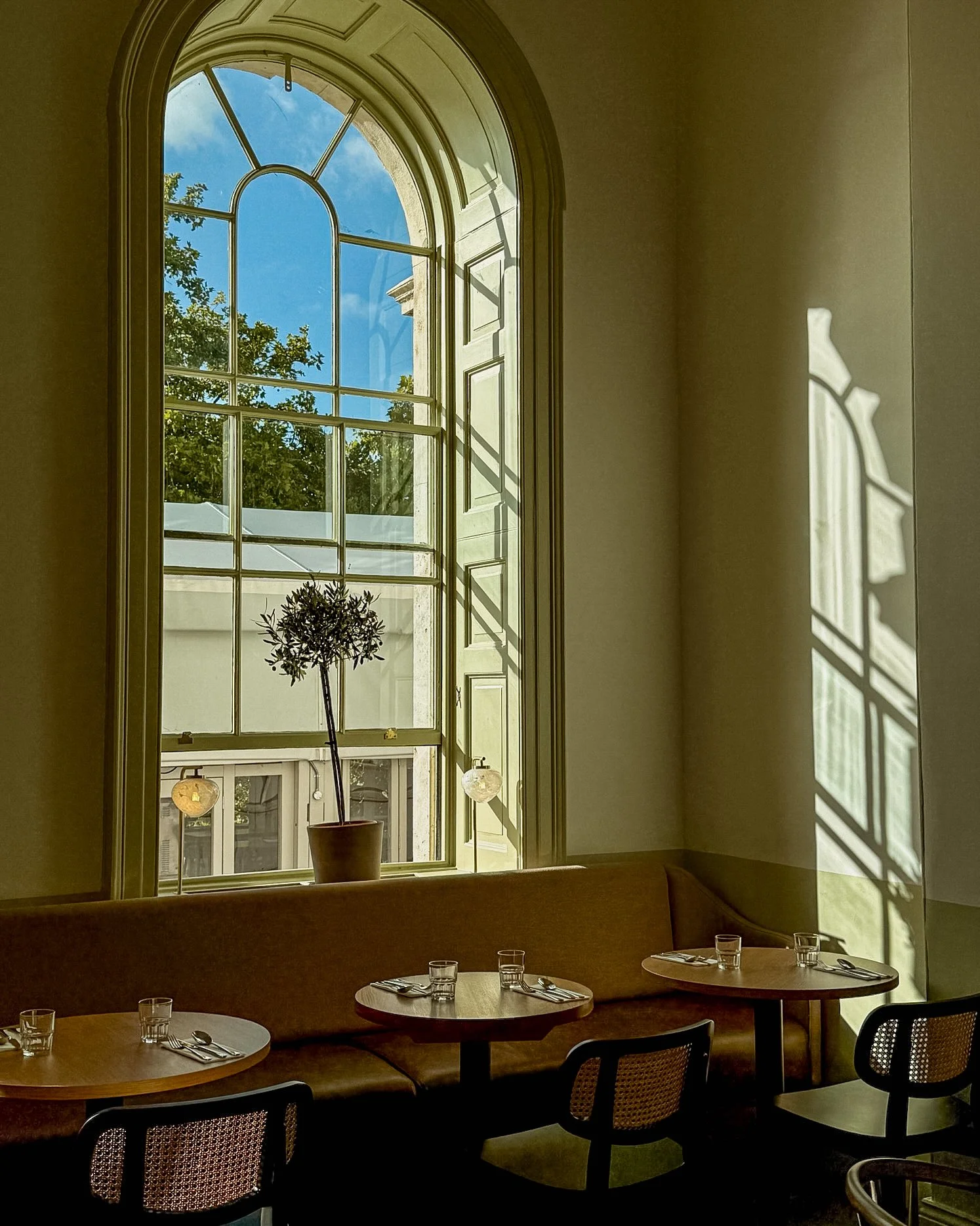 At Somerset House, aram brings that spirit to life. Inspired by the Eastern Mediterranean, with Syria at its heart alongside levantine influences from countries such as Turkey, Cyprus, and Jordan, the cooking reflects a deep respect for tradition while embracing the rhythms of modern London. Breakfast and lunch are relaxed and generous, with dishes that move easily between the familiar and the unexpected – pastries and salads, wraps and grains, za’atar croissants and halva brownies, labneh with poached eggs, roasted aubergine salad, curry cauliflower, and granola with date banoffee. Food here is thoughtful, seasonal, and designed to be shared.